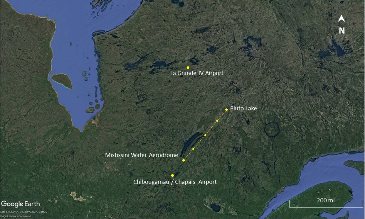 Shortly after arriving at the dock, the pilot was informed that he would be conducting a charter flight to Pluto Lake, Quebec, located approximately 135 nautical miles (NM) to the northeast. The pilot was scheduled to fly out of CSE6 alone, with only cargo on board, and at the destination, he was to drop the cargo off, pick up 3 passengers, and take them back to CSE6.