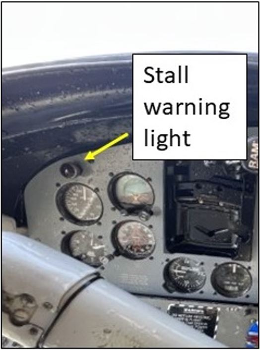 The occurrence aircraft was equipped with a stall warning light, located in the top left quadrant of the instrument panel, above the airspeed indicator (Figure 3). It was not equipped with any auditory stall warning system. The pilot did not recall seeing the light on before the collision with the water.