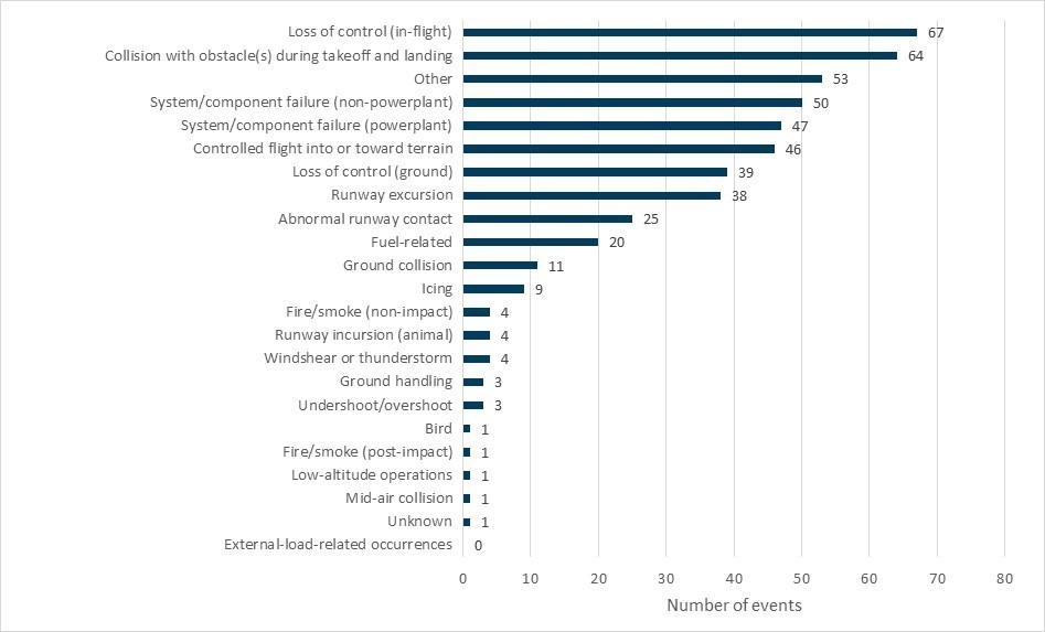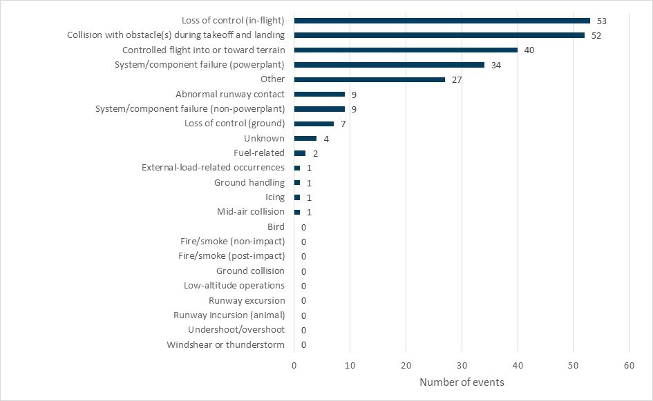 More insightful was reviewing the TSB investigation reports for 167 of the occurrences from the study period. Using the grounded theory qualitative method, the investigators developed a process to categorize accident types based on the circumstances of the accidents described in the reports. The analysis of data provided an understanding of how these accidents were happening (through precise descriptions).