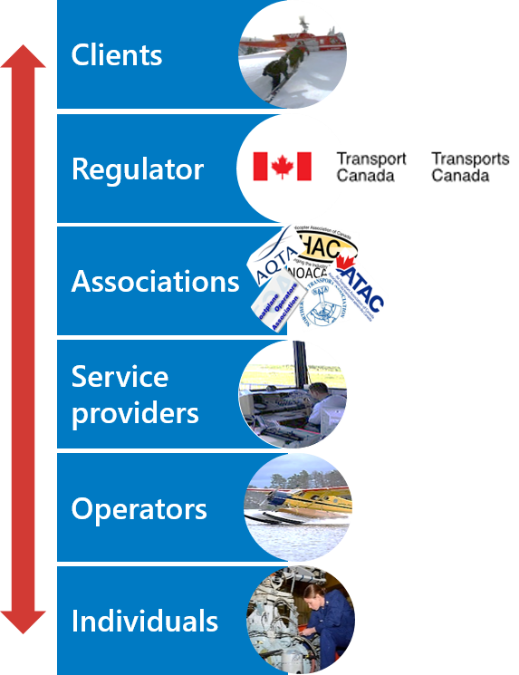 Many operators belong to a variety of associations, such as the Air Transport Association of Canada (ATAC), the Helicopter Association of Canada (HAC), the Association Québécoise du Transport Aérien (AQTA), the Floatplane Operators Association (FOA), and the Northern Air Transport Association (NATA). Such associations are well positioned to influence safety within the sector and can provide a venue for sharing best practices, tools, and safety data specific to air-taxi operations. They can also provide assistance and training in implementing proactive safety management that incorporates a positive safety culture.