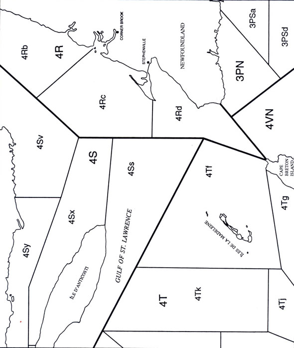 The "NADINE" left Cap-aux-Meules, Quebec, for fishing grounds 30 nautical miles (M) off Cape St. George, Newfoundland, at about 0830Footnote 3 on 12 December. She carried a crew of nine and a marine biologist from Fisheries and Oceans Canada (F&O). She reached the 4Rd and 4Ss fishing grounds in Fishing Zone 1 (see Appendix B) approximately nine and a half hours later and commenced fishing.