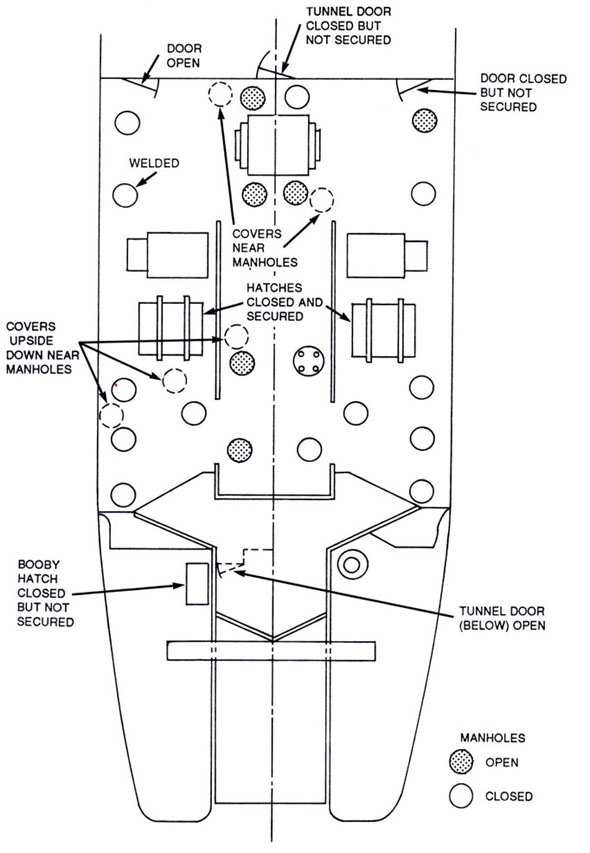Appendix M - Diagram of manholes, hatches and doorways as found after the sinking