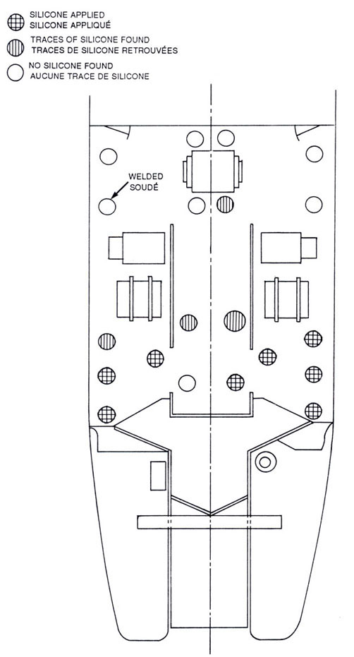 Underwater inspections of the "NADINE" by the TSB were conducted in July 1991, at the wreck site, and in November 1991, after salvage. They revealed that: