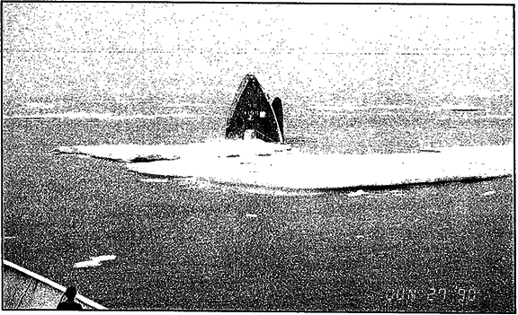En route to the first fishing area (Cartwright Channel), scattered ice was encountered on the evening of 17 June, at which time speed was reduced from normal sea speed of approximately 12 knots to 4 to 5 knotsFootnote 2. The logbook contains an entry for that date, "some very bad pieces" (of ice). Between 18 June, when fishing commenced in approximate position 50°51.2′N, 56°02′W, in 377 mFootnote 3 (206 fathoms) of water, until approximately 1330, 25 June, fishing continued in various weather and ice conditions, from calm seas and good visibility to strong breezes, rough seas with reduced visibility in rain and fog. Heading towards the fishing area "2" on the afternoon of 25 June, the vessel cleared an area of pack ice, and resumed full speed apparently without having sustained damage.