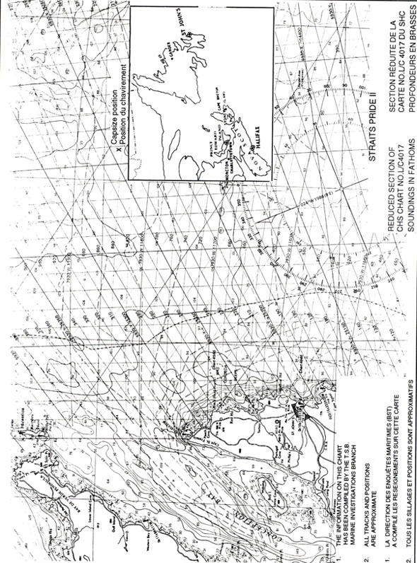 On 17 December 1990, the F.V. "STRAITS PRIDE II", inbound to St. John's, Newfoundland, from the fishing grounds with a two-third load of round (ungutted) codfish stowed in the fish hold, encountered adverse weather, capsized and sank throwing the six-person crew into the ice-cold waters. Three crew members who managed to board the inflatable liferaft were subsequently rescued, but the remaining three lost their lives.