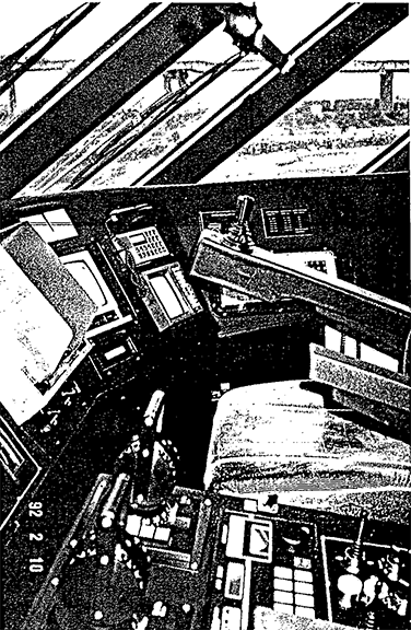 At the time of the collision, the cabin crew of the "ROYAL VANCOUVER" was engaged in serving the passengers. A member of the crew who was in the upper deck bar was thrown backward into the counter. In the lower deck bar, the contents of the cupboards, countershelf and coffee urn emptied out over two crew members.