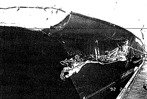 The "ROYAL VANCOUVER" sustained extensive damage to the port aluminium pontoon and some damage to the foredeck and starboard pontoon. Damage was contained forward of the collision bulkhead.