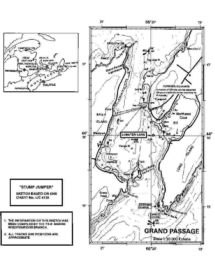 It is not common practice for fishing vessels of this type and size to prepare a detailed navigation plan when entering and leaving harbour or to use a chart. Instead, navigation is carried out using skill and local knowledge. The "STUMP JUMPER" was being navigated in this manner with the intention of proceeding first to Westport to refuel, then to cross Grand Passage to Freeport to discharge the catch at the "cars".