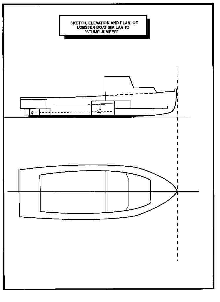 The "STUMP JUMPER" was of wooden, open construction, built to the Cape Island design and rigged for lobster fishing (see Appendix A). The hull had been sheathed with glass-reinforced plastic (GRP) and was subdivided by three transverse bulkheads below the main deck. The wheel-house/navigation position was in the forward part of the vessel, and the after open deck work area was fitted with a bulwark some 80 cm high.