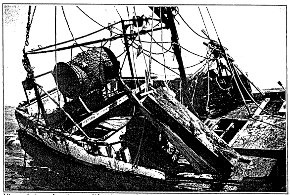 - The weight and location of the additional fishing gear reduced the vessel's effective freeboard and lowered the transverse stability.