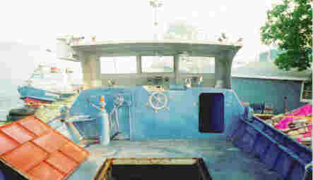 The vessel's main deck is arranged to suit two principal modes of operation: one which calls for the installation of portable fish catch storage tanks with circulated water which overflows on to the deck, and the other where the fish catch and preservation ice are stowed in insulated tote boxes loaded on the main deck. Reportedly, the recessed coamings incorporated a watertight gasket when the portable tanks were installed to ensure that the continuous overflow of catch preservation water from the storage tanks did not enter the hull, but drained overboard by way of the especially fitted under-deck scuppers.