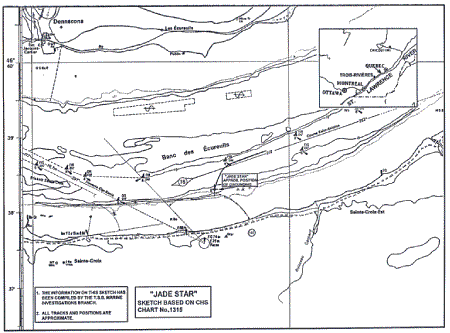 On 24 April 1994, the Canadian oil tanker "JADE STAR" departed the Ultramar Canada port facilities at Saint-Romuald, Quebec, bound for Montreal, Quebec, with a full load of gasoline and diesel oil.