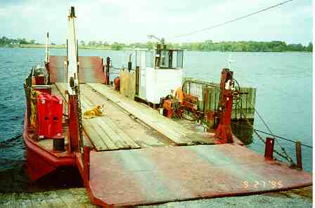 The ferry routinely carries full loads of either three automobiles and 12 passengers, or one heavy truck. Vehicles are loaded and positioned as directed by the operators. Reportedly, the operators always fit chocks of 10 cm by 10 cm hardwood, some 40 cm long, behind the rear wheels of the heavy trucks.