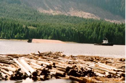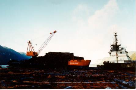 At the unloading area, two local assist tugs would aid in positioning the "SEA-LINK RIGGER" in the desired location and in preparing a boom made up of logs, which would be pulled around the log bundles when they had been dumped.