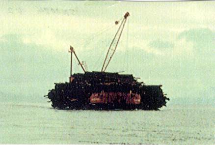 An assist tug would transfer the mate of the "ARCTIC HOOPER" to the stern of the barge and a deck-hand would board the barge forward from the deck of the "ARCTIC HOOPER". They would both open the tipping tank vents then go down into the forward and after pump-rooms to open the sea chest valves and the tipping tank flooding valves. They would then return to the deck, checking that air was coming from the tank air vents, to ride the barge as it dumped the load off the port side.