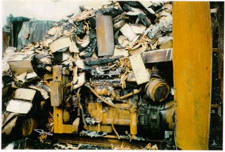 - The empty steel cargo-container originally positioned directly over the generator set was extensively oxidized from heat exposure with one side buckled, the steel floor beams twisted and the wooden floor was eradicated.
