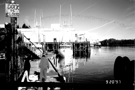 On the evening of 18 September 1997, the vessel was lying starboard side, at the Chevron floating dock in Ucluelet. The skipper was sleeping in his cabin abaft the wheel-house and the deck-hand was ashore, assisting the crew of another fishing vessel, mending nets on the Government wharf next to the Chevron dock.