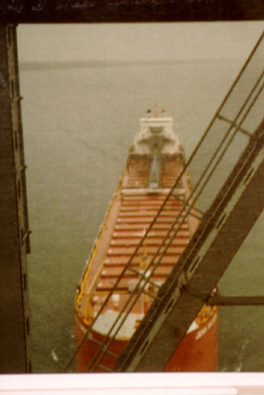 At 0045, to take way off the vessel, the pilot ordered the helm hard-to-port and the engine to "full astern." At this point, the vessel was between 0.6 and 0.7 nautical mile from the bridge. The "GRANT CARRIER" veered to port and left the channel on the south side. At 0048, the engine was reduced to "slow astern," and then at 0050, the main engine was stopped. Manoeuvres to stabilize the vessel in the current did not produce the expected results. The vessel drifted downstream to the east of buoy C-13, still outside the channel some 350 to 400 m upstream of the hydro towers. The water depth at this point is between 8.84 and 9.14 m. There is a shoal in the same area covered with only 4.26 m of water toward the south shore. Meanwhile, the opening span was locked in the "up" position, and the green signal lights came on.