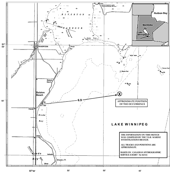 Three Lake Winnipeg Yawl vessels set out from Hnausa Harbour, Manitoba, on 23 October 1999, at approximately 0645.Footnote 3 They proceeded to a fishing area some 6.9 miles east-northeast of the harbour, where they began fishing with gill nets for pickerel, sauger and goldeye. In the early afternoon, one of the fishing vessels returned to Hnausa Harbour.
