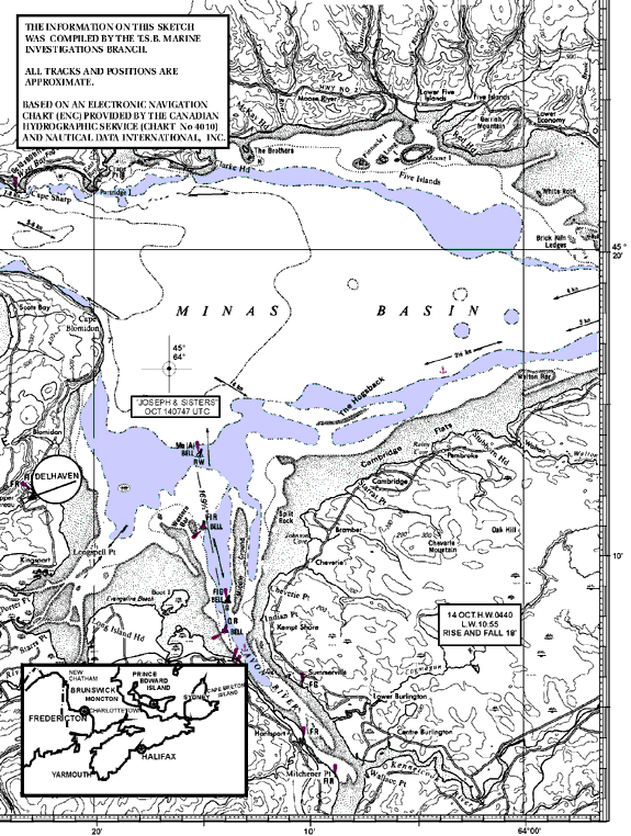 Prior to departing Delhaven, Nova Scotia, the operator listened to a local radio station for weather information. He did not listen to the sea state forecast issued by Environment Canada at 1700Footnote 2 for that evening and for October 14, which stated: "Fundy, seas one metre or less building to 1 to 2 metres this evening and to 3 to 4 metres overnight". The sea state forecast also advised, "users are cautioned that heights may differ significantly in coastal waters and depths of less than 50 metres". The 2000 marine synopsis update issued by Environment Canada on October 13 stated: "Marine interests are advised that storm warnings are in effect for Fundy Grand Manan". However, the operator believed that there was no risk in setting his traps because there was little or no wind either at his residence high on a hill or at the wharf.