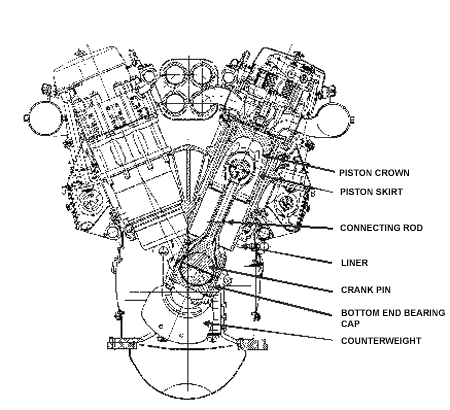 When facing forward towards the engine flywheel, cylinder units Nos 1 to 6 are on the port side and cylinder units Nos 7 to 12 are to starboard. Con-rods are numbered and stamped with a number from 1 to 12, indicating to which cylinder unit they belong.