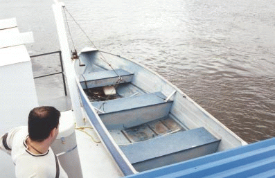 In 1993 the then owner of the Miss Gatineau had applied to the BSI for an exemption from the requirement to carry a motorized boat on board. The requirement for a motorized boat was primarily intended to facilitate the marshalling of liferafts, and the rescuing of persons in distress. Note de bas de page 8 Since the Miss Gatineau was operating in sheltered waters a short distance from shore, the BSI granted the exemption. The BSI considered an aluminium skiff, propelled with oars, (as carried on board as a lifeboat at the time of the occurrence) to be a suitable alternative. Consequently, the Miss Gatineau was not equipped with a motorized boat which would have allowed the crew to rapidly proceed downstream in the strong current to conduct a systematic search for the victim.