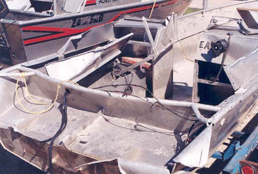 The Shannon Dawn was discovered almost submerged, approximately four miles south-southwest of the location of the Rachel M and one nautical mile beyond the shoals in deeper water. The bow of the vessel was projecting above the surface of the water. The outboard motor had been ripped off the transom. The motor was not recovered. The remainder of the vessel had extensive damage to the windshield, split steering console and motor bracket. The bilge pump, which was reported to have been non-operational before the occurrence, was missing.