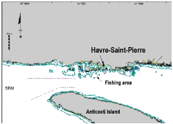 Around 0445 on 29 September 2001, the Alex B. 1 set off from Havre-Saint-Pierre with a crew of five on board and made for a fishing area off Samuel Island.Footnote 2 Around 0600, the crew commenced dragging for scallops in about 30 m of water. Fishing proceeded without incident; every half-hour, the drag was hauled aboard, emptied, then deployed again.