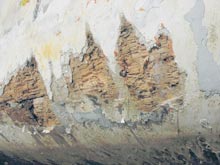 On both sides of the hull below the waterline in way of the lazarette, the fibreglass coating on the wood hull was severely damaged. Gaps in the fibreglass coating on each side were about 125 cm long and 50 cm wide, exposing the underlying wood. The wood planking showed deep scrape marks, indicating wear likely caused by repeated contact with the drag and steel cables on the hull. There was a hole, measuring approximately 10 cm in diameter, in the wood planking on the port side.
