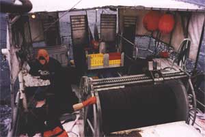 The third deckhand donned the last and only immersion suit that was stowed in the owner's cabin. The owner/operator then gave the order to abandon the severely listing vessel, now rolling between the vertical and close to her beam ends on the starboard side. The crew was being thrown against the wheelhouse bulkheads during each roll. The main engine spluttered, smoked and almost stalled with each roll.