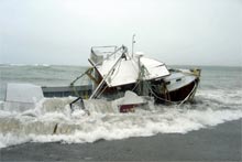 - The anchorage chosen provided little shelter from winds and waves from the southeast.