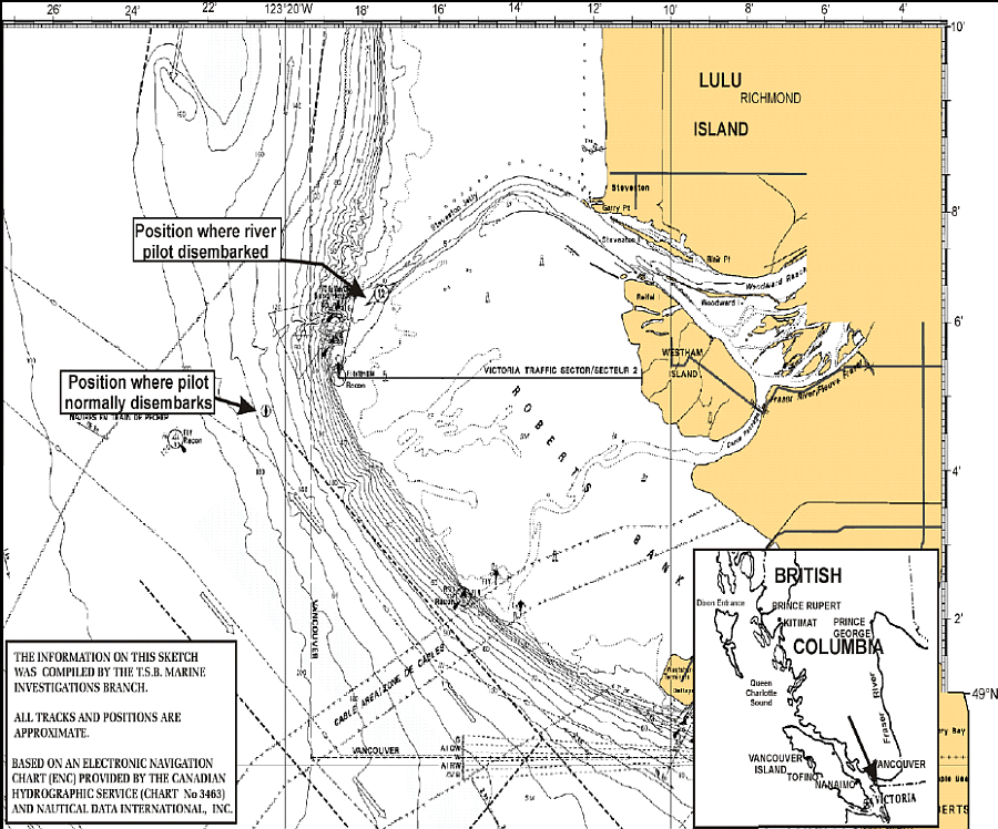 - The Fraser River pilot handed over conduct of the vessel to the coast pilot and departed the vessel before the commencement of Pilotage Area 2 and without ensuring that the bridge navigation team and the coast pilot were aware of existing channel depths.