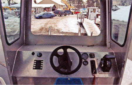 - A steering control panel with basic instrumentation, controls for engine operation and a toggle switch to operate the bilge pump were located in the wheelhouse (see Photo 3).