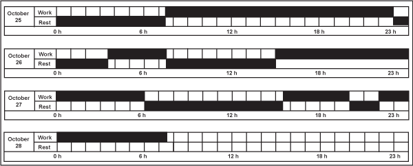 The results of calculations used in determining whether a person's 24-hour and 48-hour work/rest schedule depend on the specific hour chosen as to when the period under review begins and ends. In this instance, calculations began at 0730 on October 25 and ended at 0730 on October 28. The master piloted the bulk carrier Saginaw for 15.5 consecutive hours from 0730 until 2300 on October 25. Commencing at 1500 the following day, he piloted the vessel single-handedly for another 15 consecutive hours until 0600 on October 27. Finally, commencing at 2200, he piloted the Saginaw for seven and a half hours until it arrived at the Algoma Steel docks, Sault Ste. Marie, at 0520 on October 28. Minutes later, he boarded the Michipicoten at about 0545 and piloted it until it grounded less than two hours later at 0730.Footnote 5 The master rested for a total of four and a half continuous hours during the 24-hour period beginning at 0730 on October 25. Later on October 26, he rested for seven and a half continuous hours and, on October 27, he rested for nine and a half continuous hours.Footnote 6 He obtained a total of 13.5 hours of rest during the 48-hour period commencing at 0730, October 25, and the same time on October 27. During a second 48-hour period between 0730, October 26, and 0730, October 28, he obtained a total of 19 hours.Footnote 7 Between rest periods on October 26, the master worked a relatively short period of four hours between 0330 and 0730. Similarly, he worked four and half hours between rest periods on October 27.Footnote 8