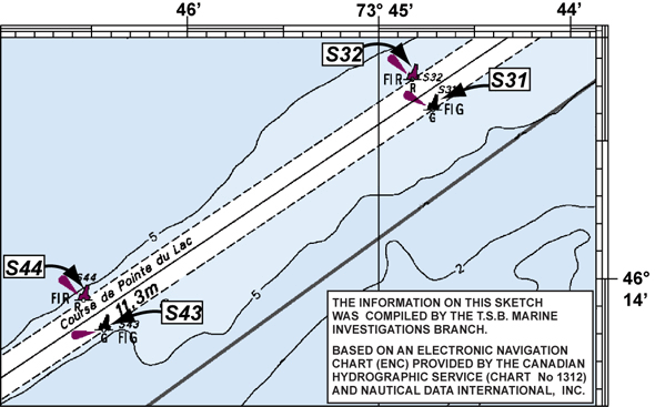 At 1730 eastern daylight time,Footnote 2 a pilot boarded the Hyde Park at Trois-Rivières, Quebec, relieving the previous pilot. The bridge team at that point consisted of the pilot, the master, an officer of the watch (OOW), and a helmsman. The engine telegraph was set to full manoeuvring speed and the vessel was soon making about 10 knots.Footnote 3