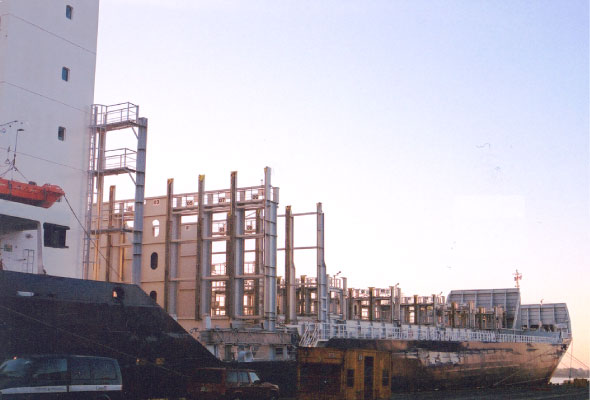 The Cast Prosperity sustained damage to almost the entire length of the starboard side shell plating, including a hole measuring 1.5 m by 6 m between frames 148 and 160. The deck plating was buckled in various locations, as were a number of web frames.
