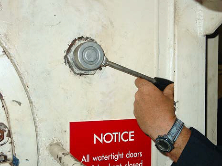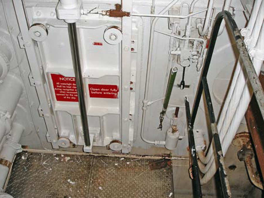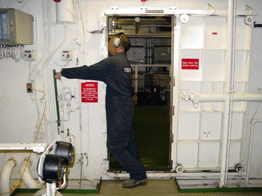 - The practice of not fully opening the watertight door before attempting to pass through it increases the risk of a personal accident.