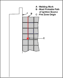 - Given the sequence of events, the proximity of the welding work to the fire zone origin, as well as the zone's depth (four bundle tiers down), there is a high probability that hot welding by-products ignited the fire.