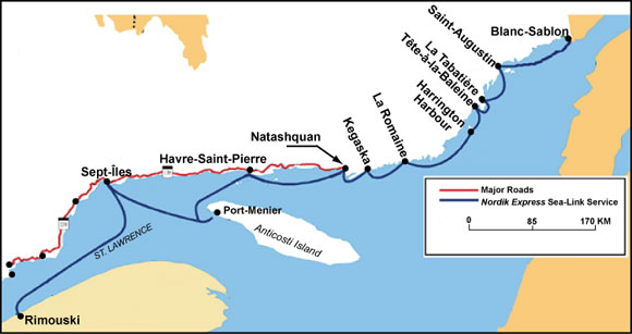 On 14 August 2007 at about 1200,Footnote 4 the Nordik Express left Rimouski, Quebec, on a weekly scheduled run to Anticosti Island and ports of call on the lower north shore of the Gulf of St. Lawrence (see Appendix B). Forty-one passengers were on board, the majority in berthed cabins. The vessel was also loaded with 111.8 tonnes of cargo, consisting of containers and vehicles.