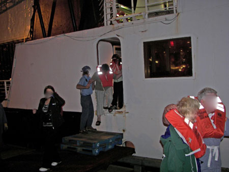 During the night, in consultation with office staff, the crew carried out an assessment of the damage, with ballasting operations conducted to bring the vessel upright. Considering the extent of the damage, however, which exceeded the scenarios found in the vessel's stability book, a precise assessment could not readily be made. At approximately 0215 on 17 August 2007, crew and passengers were permitted to re-board.