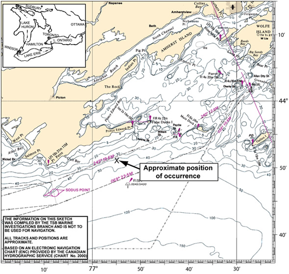 At that time, the vessel was approximately 4 nautical miles south of Prince Edward Point in eastern Lake Ontario.