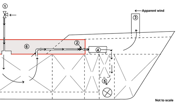Figure 3. Migration of flammable vapours from cargo tank to bow thruster compartment.