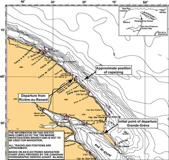 On 18 May 2009 at approximately 1739 Eastern Daylight Time, the small fishing vessel Le Marsouin I, with a crew of three on board, capsized while navigating in slight to moderate quartering seas off Riviere-au-Renard. One deckhand was rescued by the Canadian Coast Guard shortly afterward. The bodies of the master and the second deckhand were recovered later.