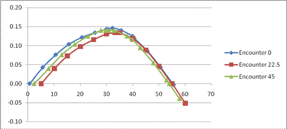 Angle of encounter (degrees) |