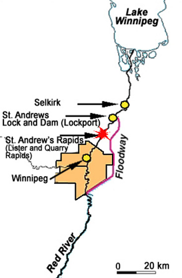 The construction of the St. Andrews lock and dam was completed in 1910 at Lockport, Manitoba, 27 kilometres north of Winnipeg. The dam was built to flood the Lister Rapids, the head of a series of 5 rapids situated on the Red River known as St. Andrew's Rapids, stretching for 16 kilometres upstream of the dam between Winnipeg and Lockport to enable shipping between Winnipeg and Lake Winnipeg (See Figure 1). The lock and dam are under the responsibility of Public Works and Government Services Canada (PWGSC). Aside from 3 commercial passenger vessels, the marine traffic transiting the waterway is recreational.