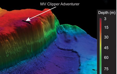 - The Clipper Adventurer ran aground on an uncharted shoal after the bridge team chose to navigate a route on an inadequately surveyed single line of soundings.