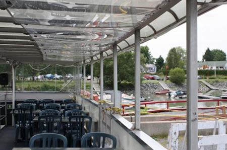 The vessel, berthed in the Chenal du Moine, is used for daytime sightseeing from June to September and operates around the Port of Sorel and the Sorel Islands on the western end of Lac Saint-Pierre, Quebec.