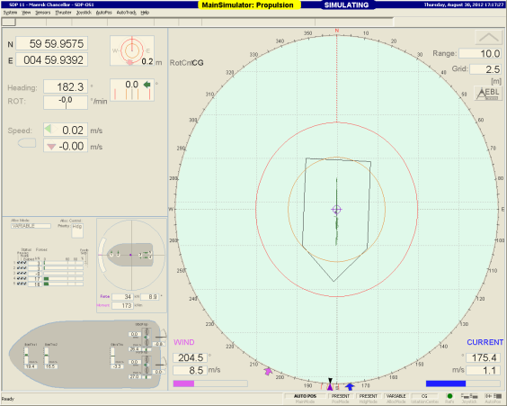 - The real-time plotting of the vessel's position in relation to the selected setpoint;