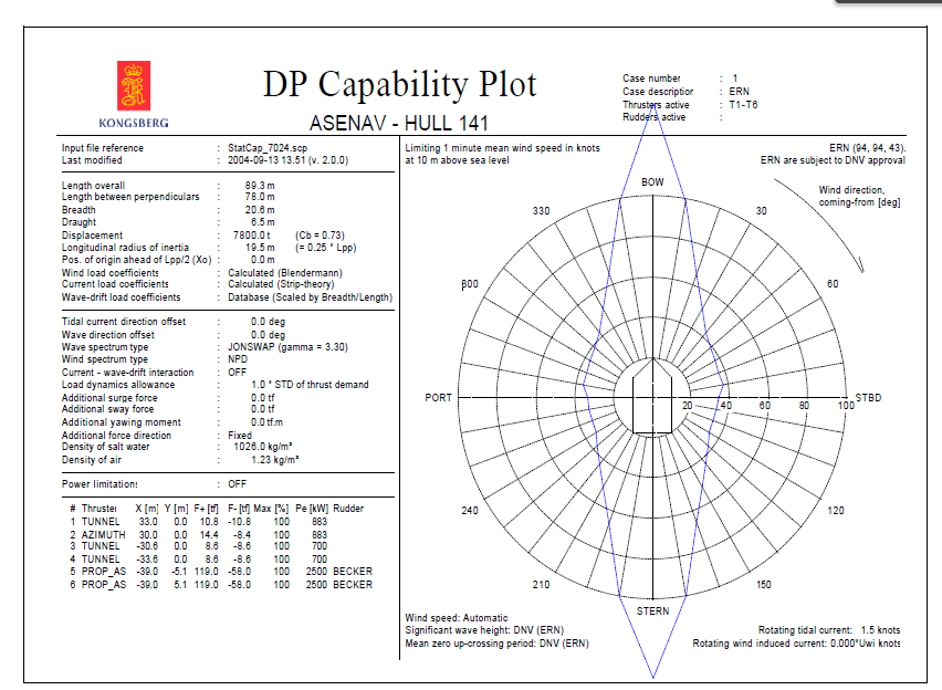 - Around 1450, the master initiated a capability analysis of the DP system and the result indicated that the vessel could maintain position on any heading in the existing weather conditions at the time, but with a significant wave height (Hs) of 5 m;