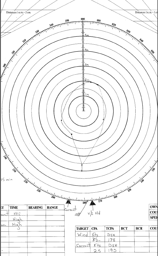 | Footprint (d) | 300° | 28 | 335° (5° off stbd bow) | 2.5 m | 1.5 m (port) |